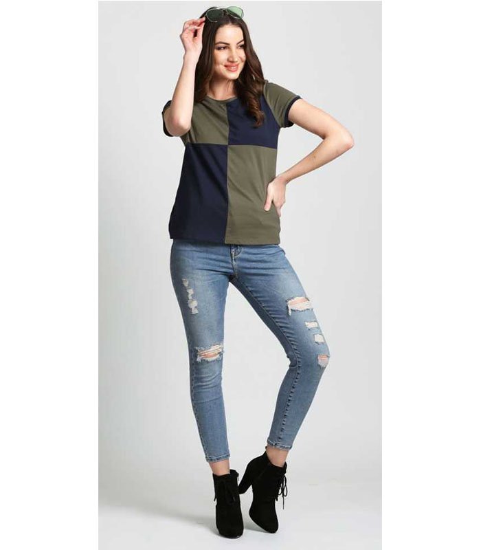 This beautiful olive and blue top is one of the stylish yet trendy top among latest design among western wear.