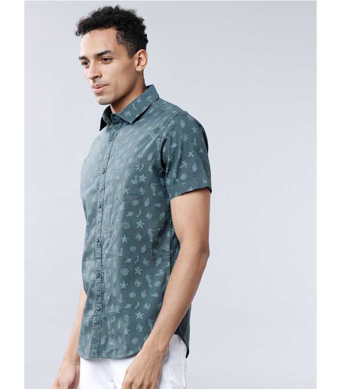 Men Slim Fit Printed Cut Away Collar Casual Shirt